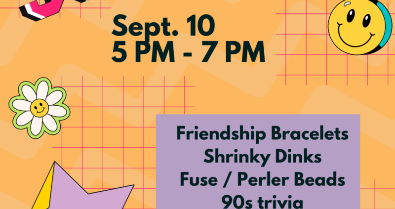 Come enjoy some trivia while you spark creativity with making fuse bead creations, friendship bracelets, and shrinky dinks – or just pick up some coloring pages and enjoy the company.
