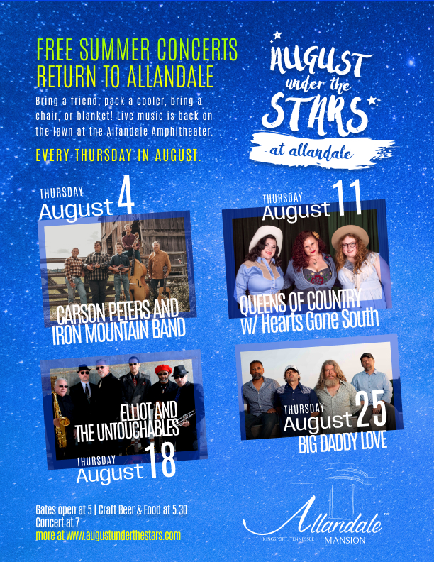 August Under the Stars at Allandale returns for the 2022 season! We have a lot of great artists lined up for you this year and we hope you will join us for this FREE concert series!