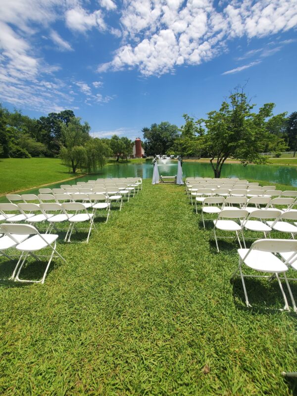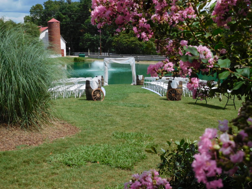The Brooks’ Pavilion is a one level, open sided venue with a lawn area and pond views.