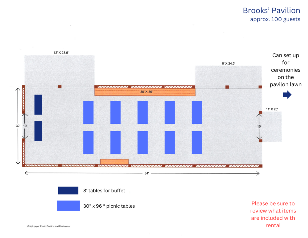 A perfectly lovely spot for a wedding, birthday party, company or church picnic, or other gathering! The Brooks’ Pavilion has hosted thousands of events over the last three decades.